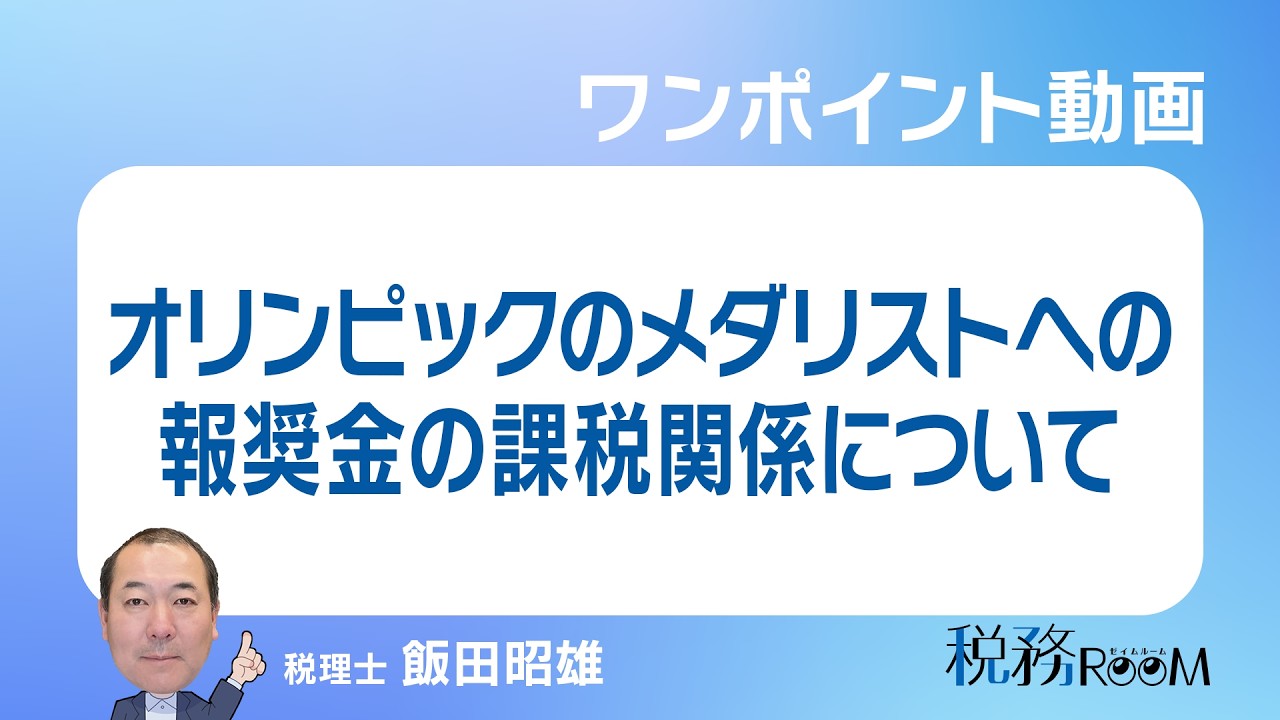 動画をアップしました 投稿日 2026.03.19 著者 iidatax カテゴリー コラム オリンピックのメダリストへの報奨金の課税関係について解説しています。 ぜひご覧ください。 0094【ワンポイント動画】オリンピックのメダリストへの報奨金の課税関係について収録日:2026年3月12日詳しい資料がダウンロードできる「月刊DVD 速報・税務セミナー」公式サイト「税務ルーム」では、税理士の先生方や税務会計業務に従事する方々を対象…www.youtube.com